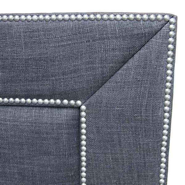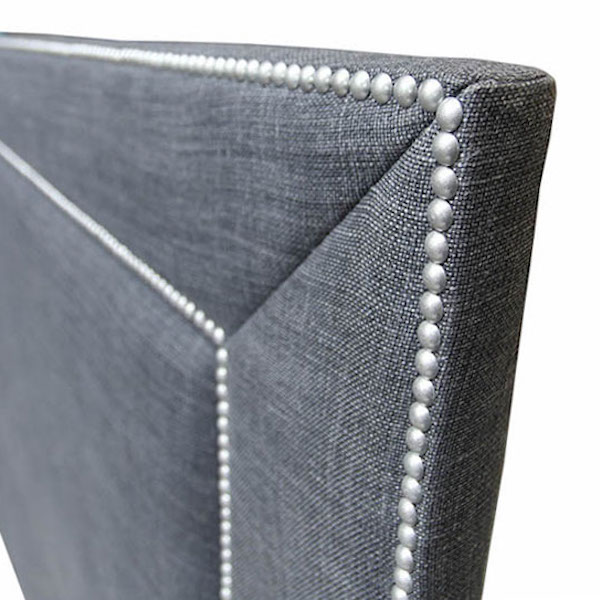 The Jasmine Headboard is a fully upholstered headboard with metallic studding detail. Get in touch with one of our consultants today to custom design your Jasmine Headboard.
