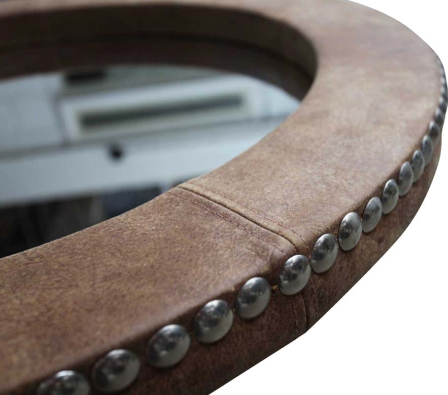 The circular mirror is the perfect addition to your contemporary furniture collection. This trendy round mirror comes in three sizes and can be upholstered in the fabric of your choice.