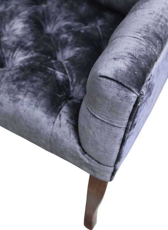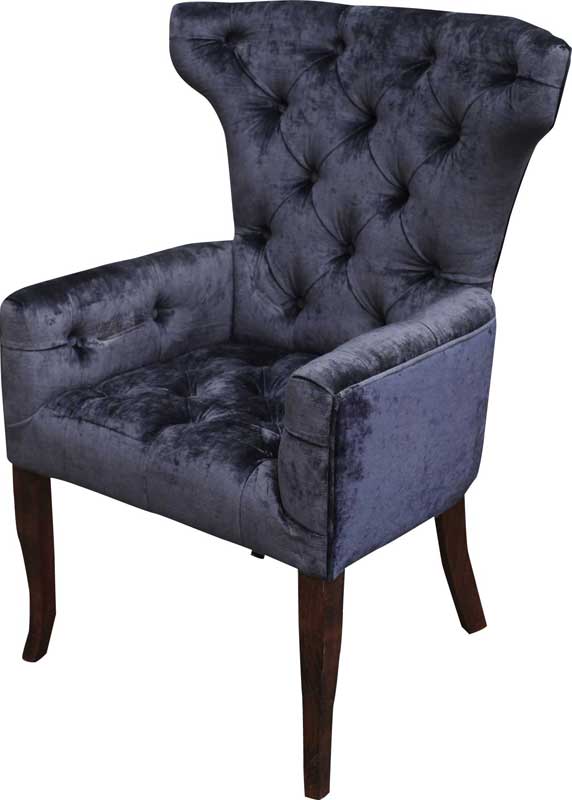 The Maria Dining Chair is a deep seated, buttoned dining chair. The wooden legs are curved and classical. It is ultimately luxurious.