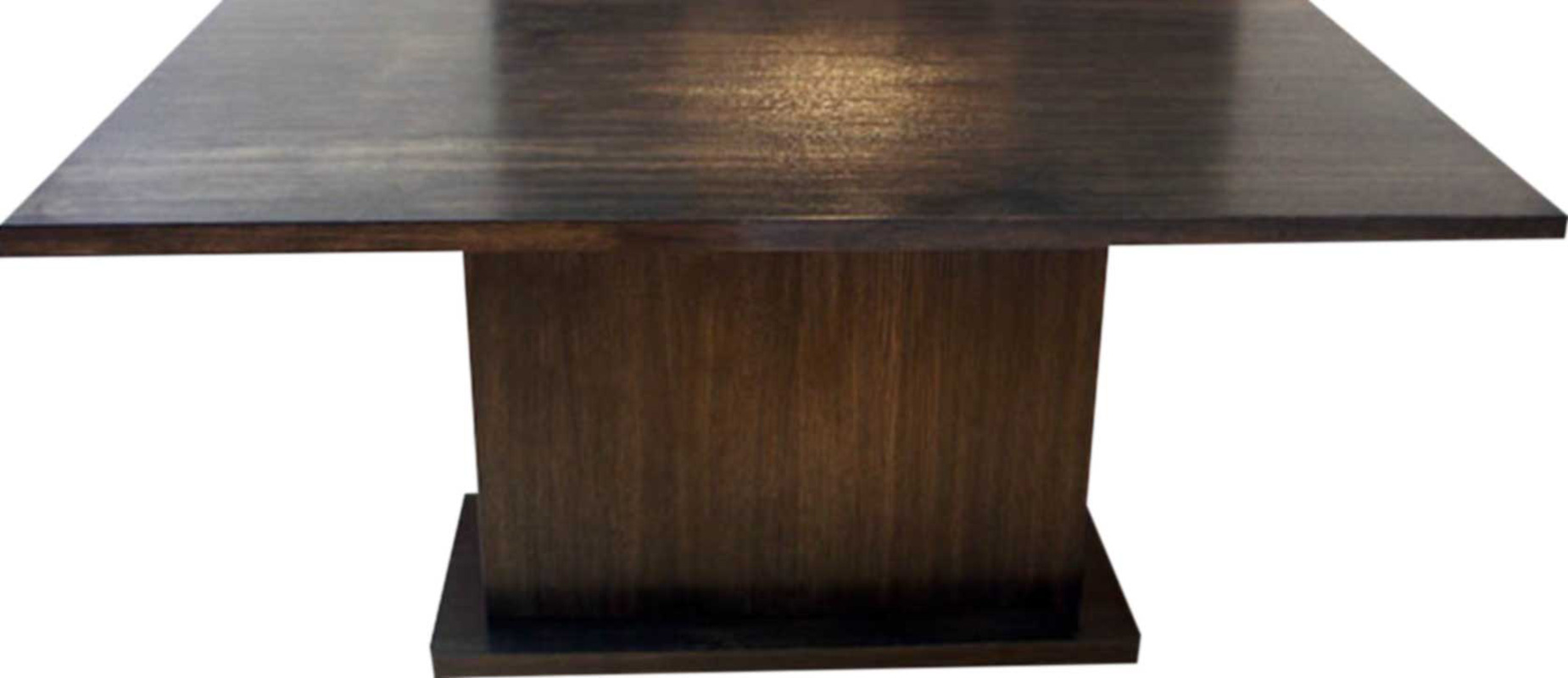 The Stein dining table is a solid wood table with a central plinth. It can be made to size and the veneer can be stained to specification. It has a high sheen finish and is available in various lengths.