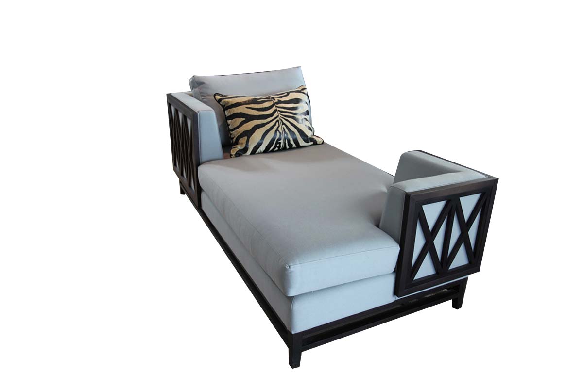 The David chaise longue is a contemporary option that will make a statement with the wooden pattern detail on the back, separate seat and back cushion. The design can be reversed and will be sprayed to your specification.