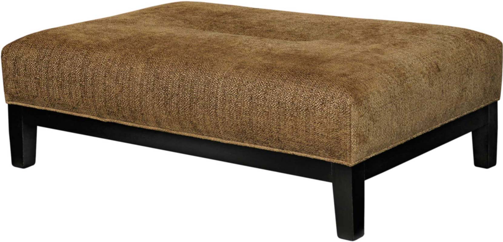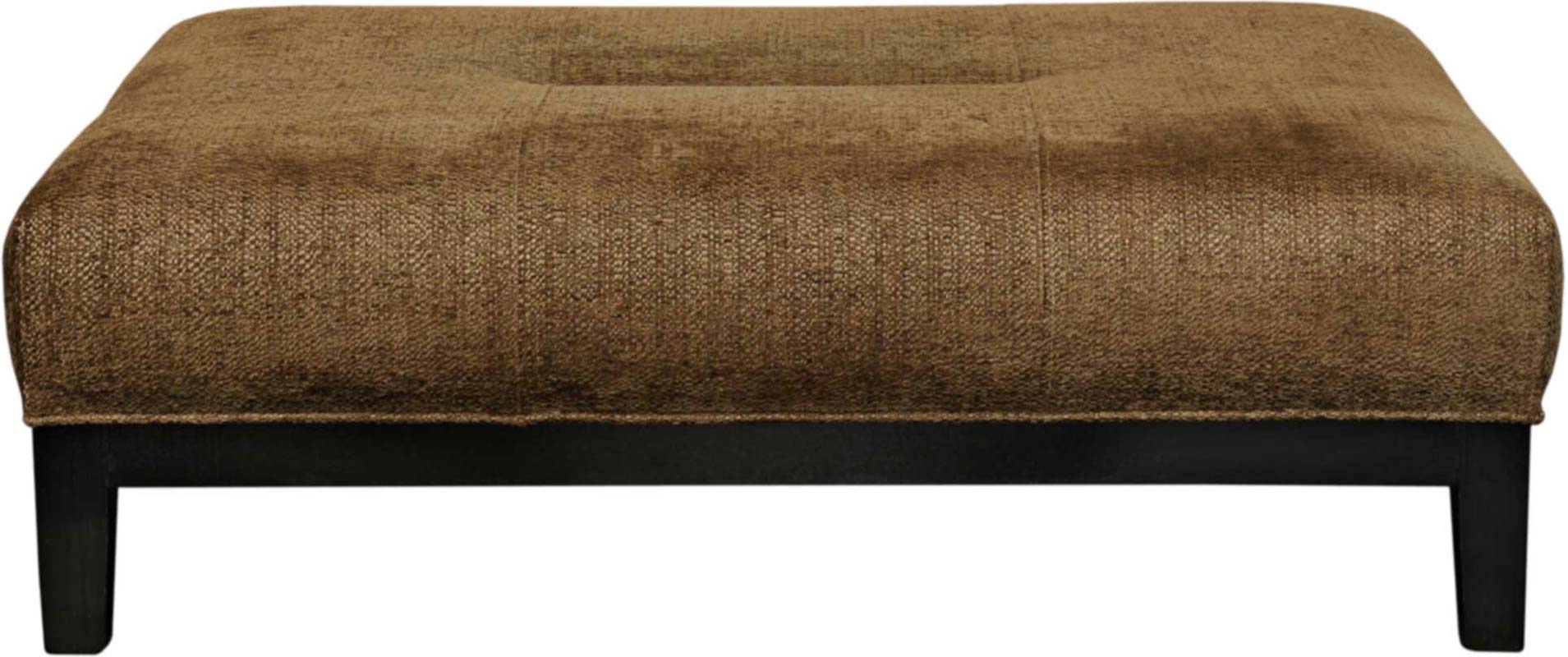 This is a low ottoman bench with an upholstered top, stitch detail on the base and a wooden plinth. Wood finish and fabric of your choice.