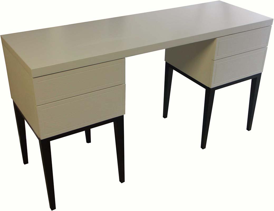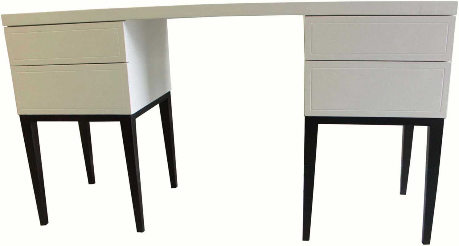 The Kim desk can also be used as a dressing table. It has plinth detail, four soft close drawers and raised leg. The Kim desk / dressing table can be sprayed in any finish.
