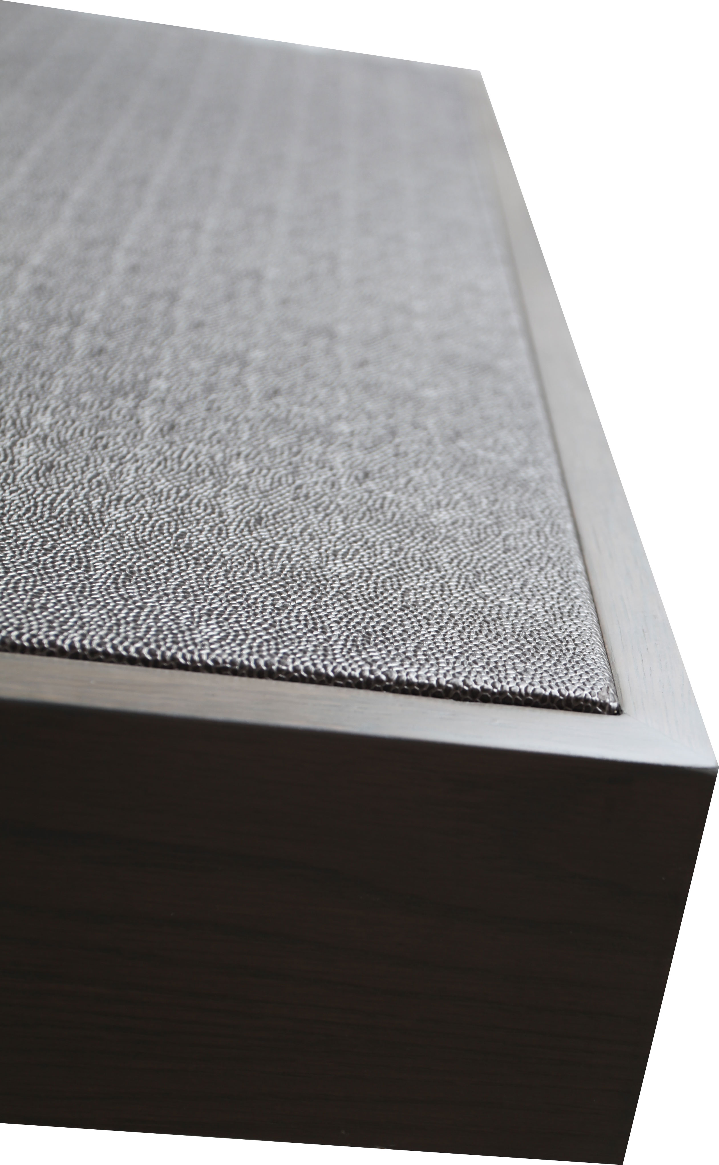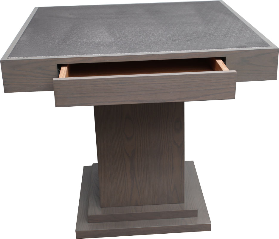 The Yorkshire desk is a versatile desk or entrance table with a single plinth leg and hidden drawer on soft close runners with a vinyl or mirror inlay.